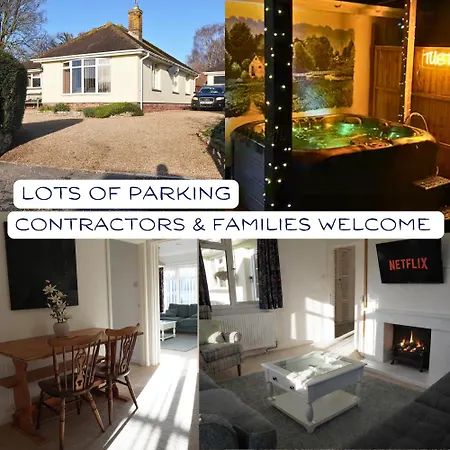 Die Big Group Bungalow, Sleeps 9, Perfect For Families Sturminster Newton liegt ca. 5 Gehminuten vom The Exchange entfernt und lockt mit einem Whirlpool. Diese Villa verfügt über ein privater Parkplatz und eine Terrasse mit Aussicht auf den Garten.
